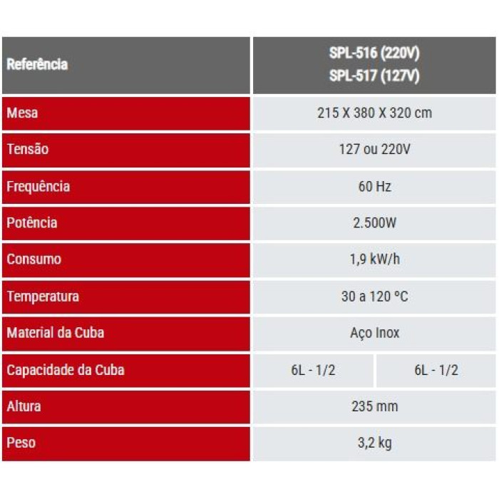 RECHAUD TÉRMICO 1 CUBA - 220V - MARCA SPOLU